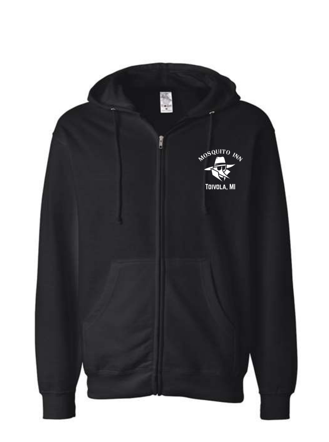 Medium weight black full zip hoodie with Mosquito Reaper design on the back. Standard front chest logo.