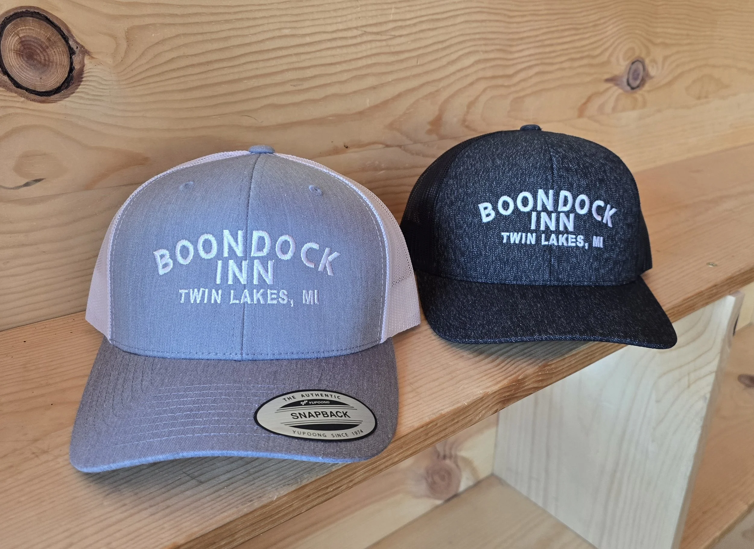 Merchandise Shop › Boondock Inn Basic Snapback Hat Image 1 of 3 Image 2 of 3 Image 3 of 3 Boondock Inn Basic Snapback Hat $25.00 Bold text Boondock Inn logo embroidery. Color: Charcoal & Black Forest Camo Coyote Brown & Black Black & Safety Green Black & Safety Orange Navy & Silver Add To Cart Added! Bold text Boondock Inn logo embroidery.