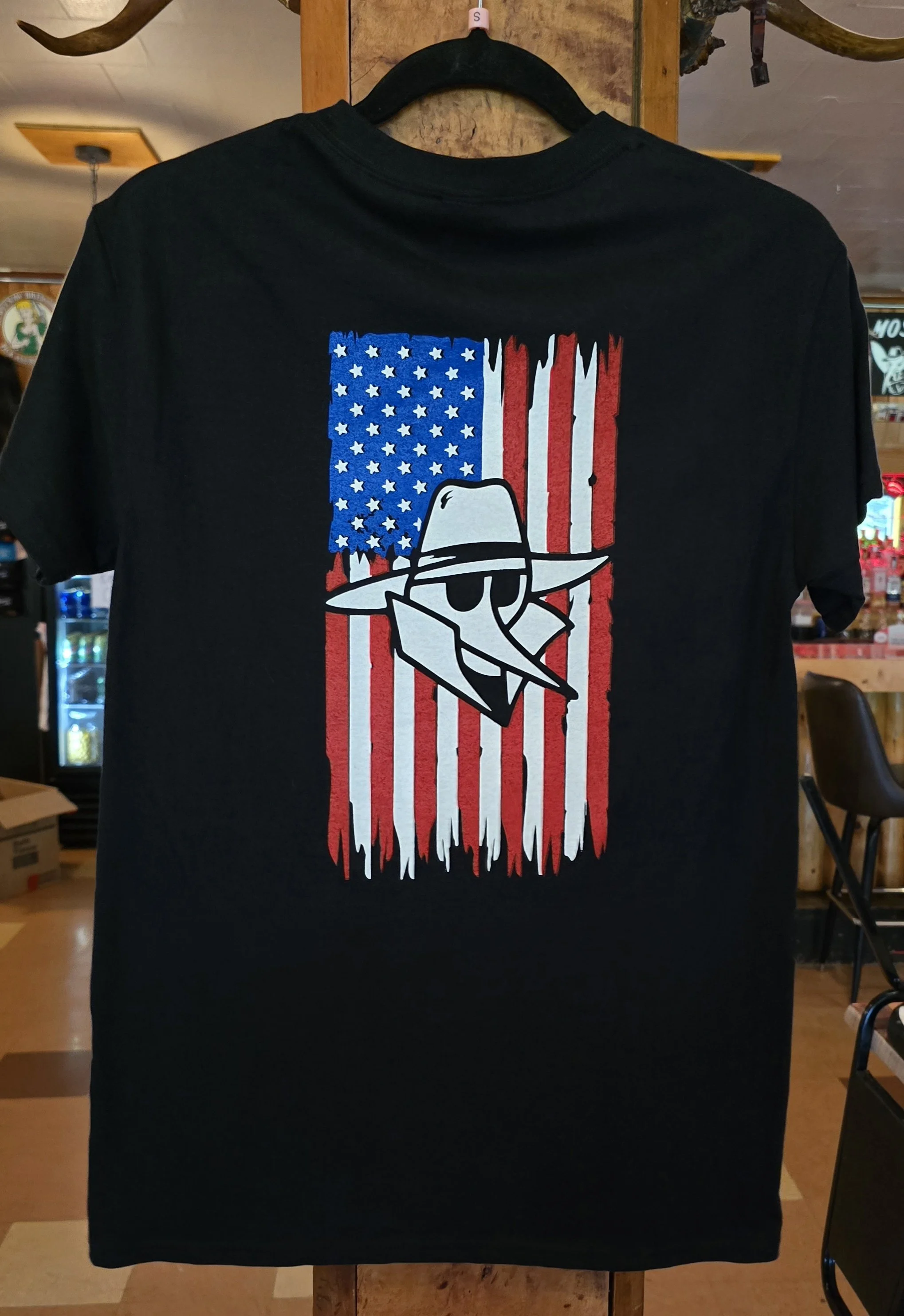 Merchandise Shop › American Flag T-Shirt Image 1 of 3 Image 2 of 3 Image 3 of 3 American Flag T-Shirt $0.00 Black short sleeve t-shirt with 3 color flag design on the back. ‘Veteran Owned’ logo on the front chest. Size: S M L XL 2XL 3XL Add To Cart Added! Black short sleeve t-shirt with 3 color flag design on the back. ‘Veteran Owned’ logo on the front chest.